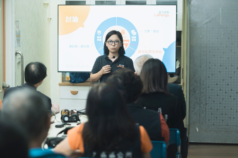 今年特別結合盤古銀髮有限公司引入VR失智症沈浸式體驗,亦即運用虛擬實境(VR)讓民眾、照顧者及第一線服務人員能以第一人稱視角,身歷其境地體會失智者在日常生活中面對的困難與情緒,例如情境中有一桌好菜,失智者可能會因幻覺看到菜裡面有蟲蠕動而不敢進食;不想進浴室洗澡的背後原因,可能看見浴室裡有黑洞而恐懼卻步;因妄想常看到靈異人物而恐慌不安等。不同於制式活動多以理性說明為主,只能「看」或「聽」,而是透過VR可以深入其境「感受」,引發情緒共鳴,讓人理解失智者的焦慮、恐懼與無助,對於推動失智友善社區助益良多。
