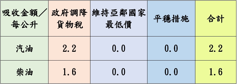 中油:1/5起汽、柴油價格各調降 0.2 元
