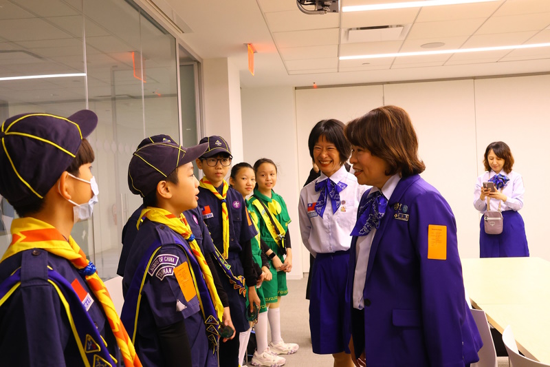 今日嘉大附小的童軍團隊共同參與交流會議,特別的是學生們自行規劃由住宿地點前往美國女童軍總會所在地點的方法。過程中學生相互討論、合作,並於事前充份預先準備,展現童軍探索、合作、持續學習的精神,讓學生們直呼此行收穫滿滿。