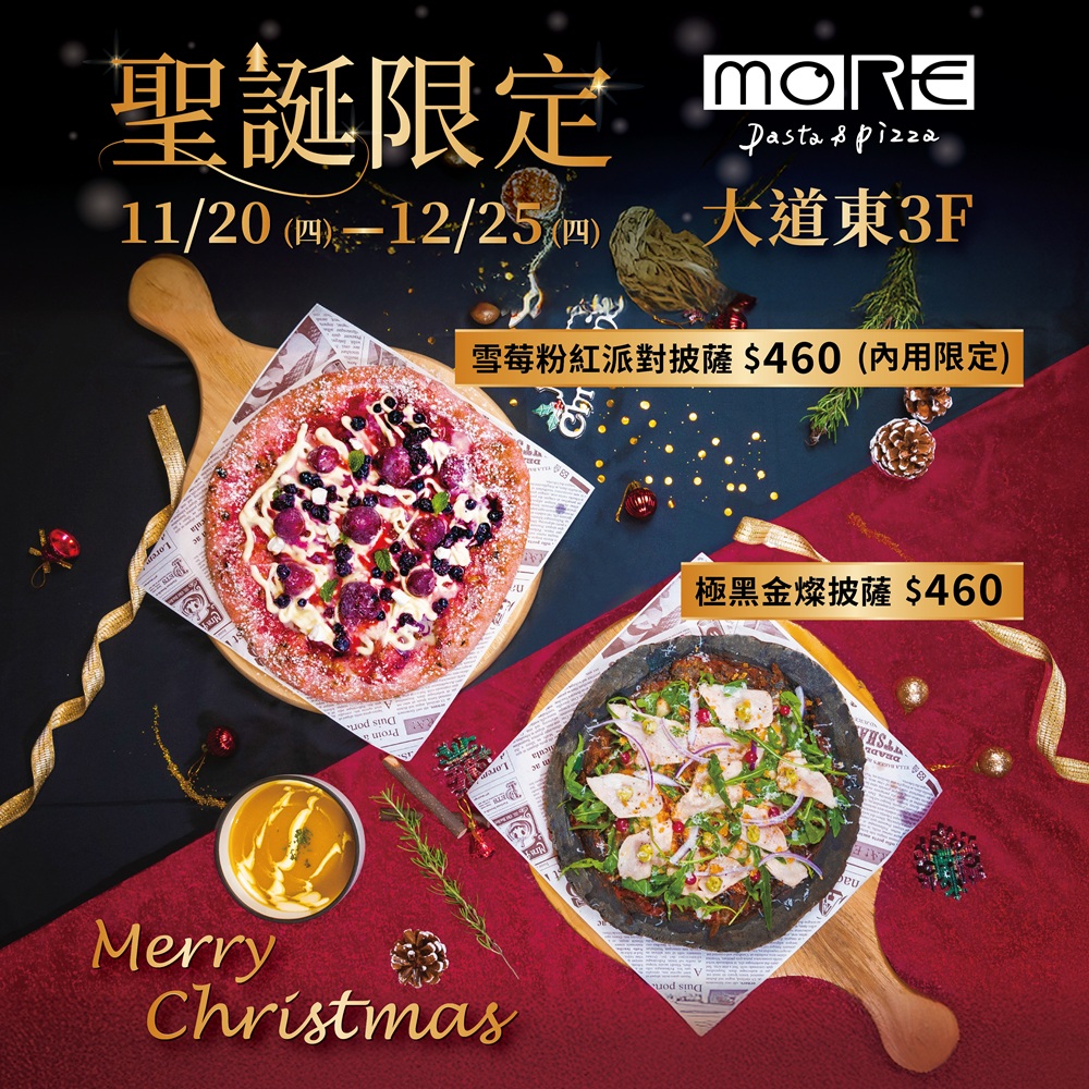 除了購物外,館內還有近五十家餐飲品牌,提供各式料理,還有聖誕節的期間限定餐點,讓聚餐更具儀式感。「默爾」即日起-12/25(四)推出聖誕限定口味披薩;「添好運」即日起-12/31(三)推出「聖誕愛我好運四人套餐」;「吳寶春自己做」12/30(二)前聖誕節限定品項登場,讓聖誕過節行程更豐富。無論是家庭聚會、公司交換禮物、朋友相約小酌或情侶浪漫晚餐,都能滿足所有人聖誕聚餐需求。