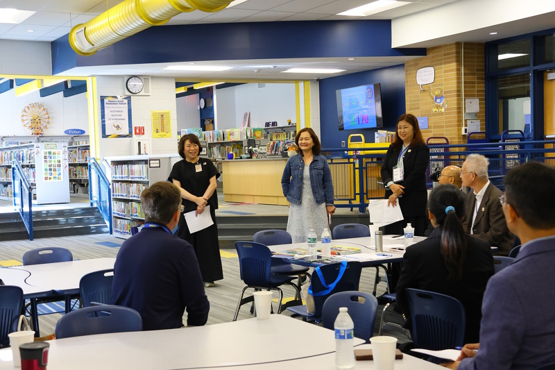黃敏惠市長此行帶領市府團隊參訪族裔多元,且以新穎活潑教學見長的WW-P學區,同時也為其多元、活潑的教學方式印象深刻。其中,Maurice Hawk 小學推動雙語沉浸式課程(Dual Language Immersion, DLI),其特色為在數學、科學與語文學習中,同時融入中文與西班牙語教學。這不僅增強了語言能力,也培養了跨文化理解力。這樣的教育模式與嘉義市推動的「雙語教育」方向相呼應。