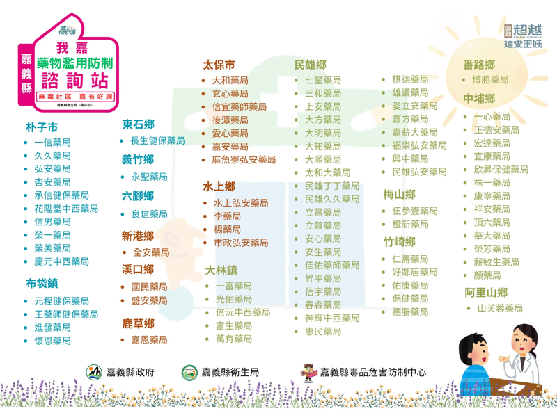 全縣87藥局加入行列 嘉義縣衛生局設立「我嘉藥物濫用防制諮詢站」