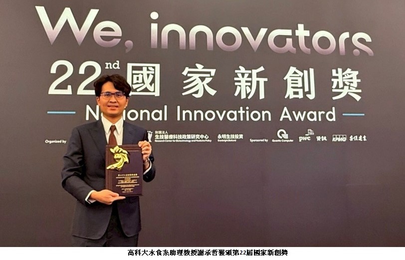 另一方面,高科大水食系助理教授謝承哲與臺大、北醫的跨校團隊,以「應用精準發酵策略開發臺灣在地作物保健高值化功效」主題獲頒第22屆國家新創獎 - 學研新創獎的農業與食品生技類。研究團隊在發酵臺灣紅藜、臺灣紫芝等在地農副產物的過程中,鑑別出具關鍵生理活性之特定化合物,並據此建立快速且高值化的保健功效開發模式。該策略不僅促進農副產物之永續與多元應用,亦有效縮短保健功效開發時程,得以精準鎖定目標功效方向。