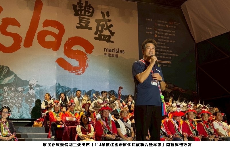 原住民族委員會陳義信副主委今(25)日出席於桃園陽光劇場舉辦的「114年度桃園市原住民族聯合豐年節」開幕典禮,與各族群領袖、族人及地方貴賓共同歡慶年度原住民族盛事。陳副主委表示,桃園市擁有全國最完整的16族原住民族群,原住民族人口超過8萬9,000人,位居全國第2,是多元文化共榮的重要象徵。